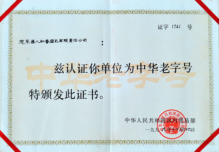 走 進 我 們 公司簡介 企業(yè)文化 資質(zhì)榮譽 發(fā)展歷程 您現(xiàn)在的位置:網(wǎng)站首頁 > 走進我們 > “玉和”商標曾獲得齊齊哈爾市知名商標 中華老字號證書 中華老字號 中華老字號 龍江老字號 曾獲得十佳消費者喜愛的暢銷品牌 共13條記錄 當前為第1頁/共3頁上一頁123下一頁
